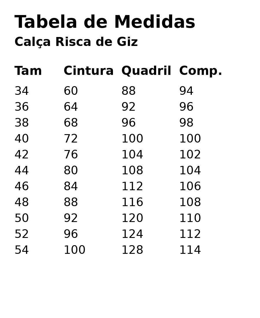 Disponível do 34 ao 54, com uma grade ampla que acompanha essa proposta de adaptação.